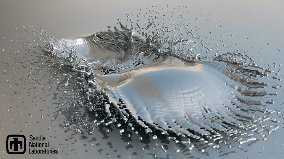Visualization of an aluminum ball colliding with an aluminum block, at high speed.